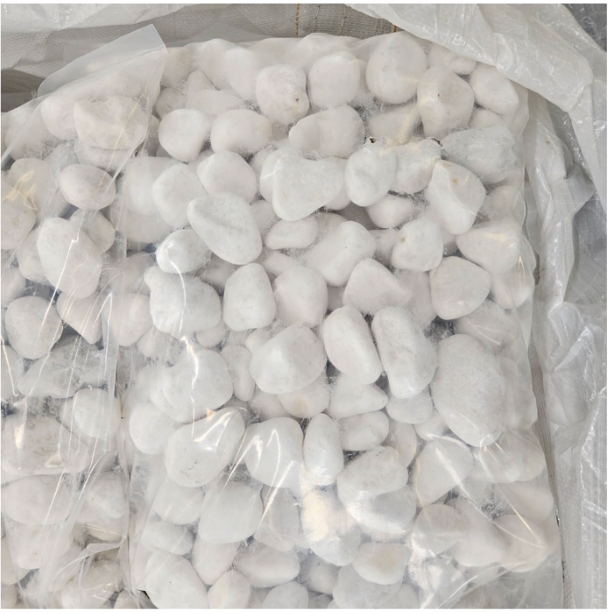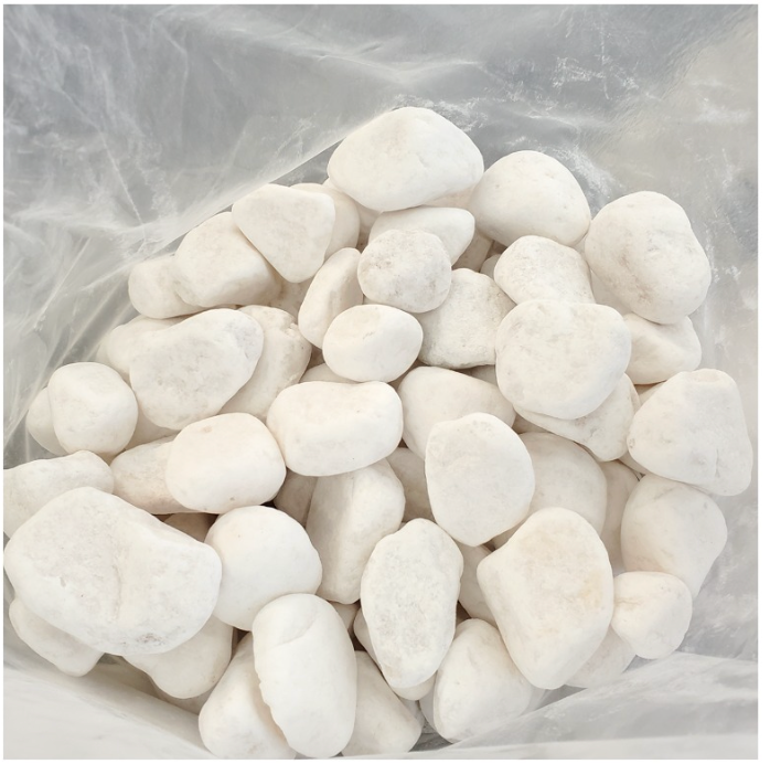 Elevate your landscape with the timeless elegance of Snow White Pebbles. Made from premium marble and carefully tumbled for a smooth finish, these pebbles bring a bright, modern touch to any space. Their crisp white tones make them perfect for creating clean lines, high contrast with greenery, or elegant decorative accents.